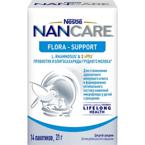 - Подходит для малышей с рождения: NAN CARE Flora-Support может быть использована для поддержания кишечной микрофлоры и иммунной системы малышей с самого рождения.