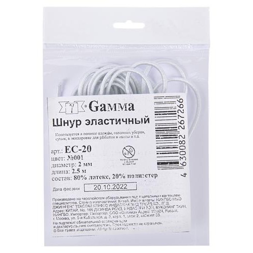Эластичный шнур GAMMA белый, 2мм х 2.5м (kastd) в магазинах Ашан