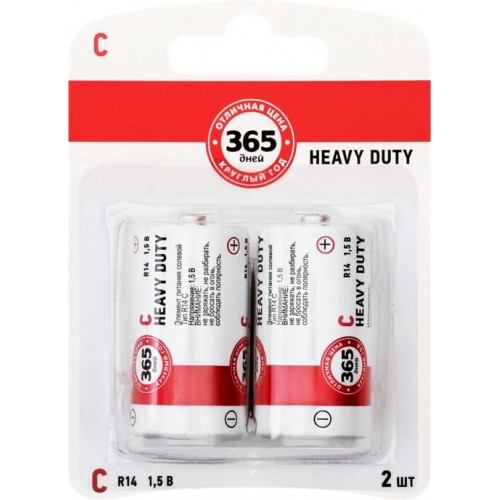 Элемент питания 365 ДНЕЙ R14 солевой Арт. CZR142, 2шт в магазинах Лента