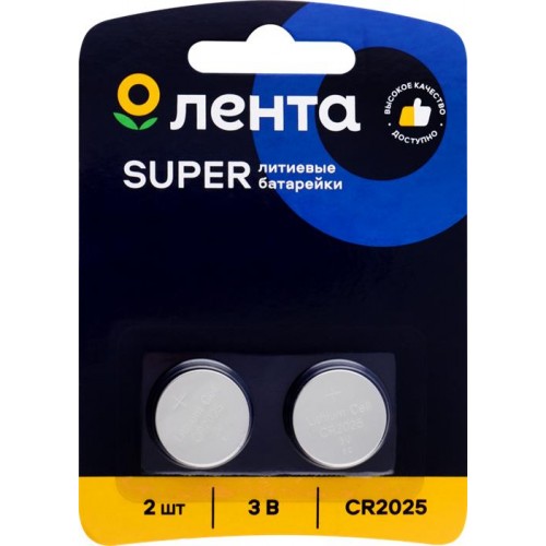Элемент питания ЛЕНТА CR2025, 2шт в магазинах Лента