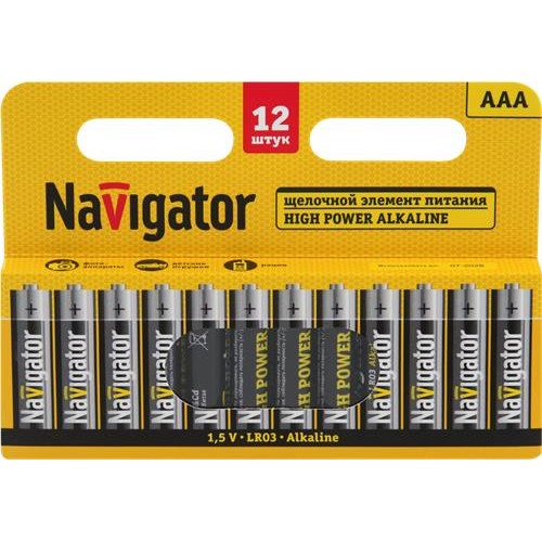 Элементы питания NAVIGATOR 95 160, щелочные, ААА, Арт. NBT-NE-LR03-BP12, 12шт в магазинах Лента