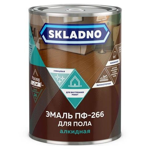 Эмаль для пола Skladno ПФ-266 желто-коричневая, 0,8 л (kastd) в магазинах Ашан