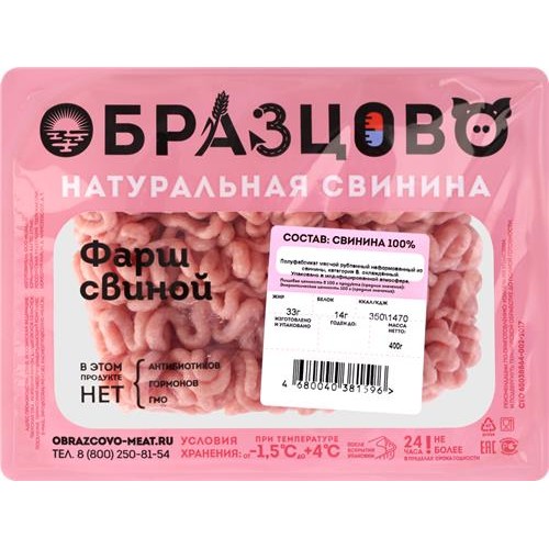 Фарш свиной ОБРАЗЦОВО, 400г в магазинах Лента