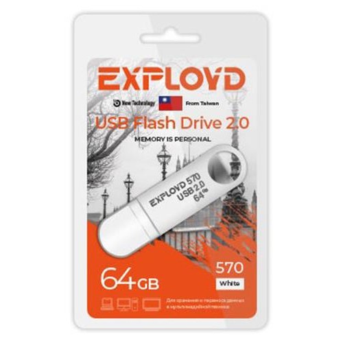 Флешка Exployd 570 64GB белая (kastd) в магазинах Ашан