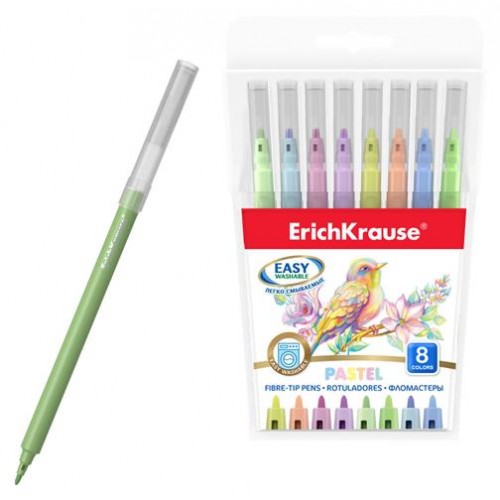 Фломастеры ErichKrause Pastel Easy Washable, 8 цветов (kastd) в магазинах Ашан