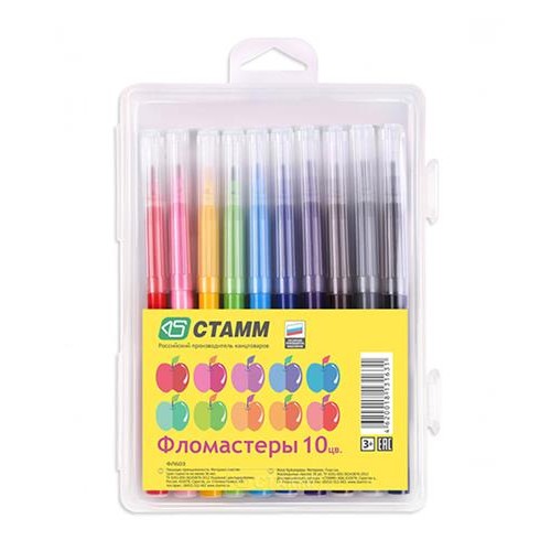 Фломастеры СТАММ Яблоко смываемые, 10 цветов (kastd) в магазинах Ашан
