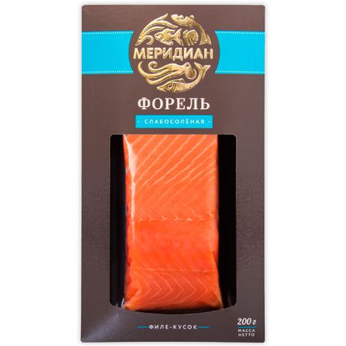 Форель Меридиан радужная филе-кусок с кожей слабосоленая охлажденная, 200г в магазинах Перекресток