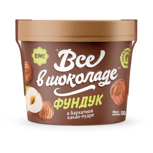 Фундук ЕМ! Все в шоколаде в бархатной какао пудре, 130 г (kastd) в магазинах Ашан