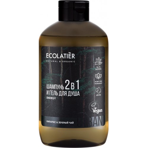 Гель для душа и шампунь мужской ECOLATIER 2в1 Кипарис&зеленый чай, 600мл в магазинах Лента