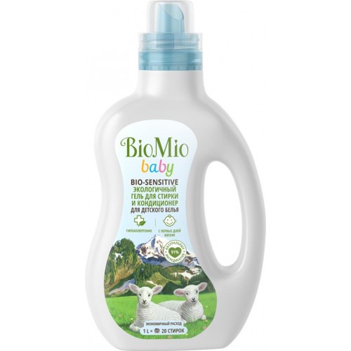- Экологичный гель-кондиционер BIOMIO Bio-Sensitive предназначен для бережной и эффективной стирки детского белья.