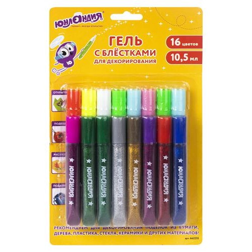 Гель ЮНЛАНДИЯ с блестками для декорирования, 16 цветов х 10,5 мл (kastd) в магазинах Ашан
