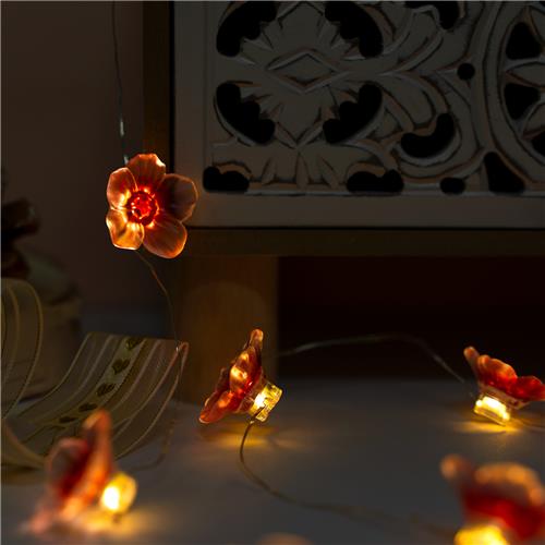 Располагая длиной 110 сантиметров, гирлянда состоит из нежных, приятных на вид цветов, излучающих теплый свет. Работает она от 2-х батареек типа AA (не входят в комплект), что делает ее удобной для использования в любом месте.