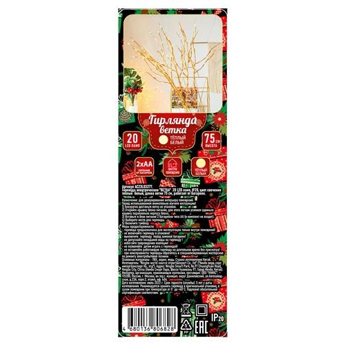 Гирлянда электрическая Ветка IP20 20 LED на батарейках, 75 см (kastd) в магазинах Ашан