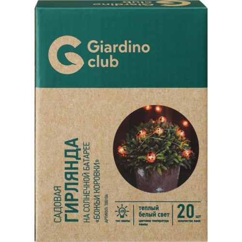 Гирлянда садовая GIARDINO CLUB Божьи коровки 20хLED 3,9м, на солнечной батарее, Арт. 780104 в магазинах Лента