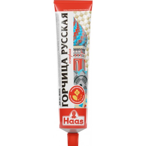 Вода питьевая, зерна горчицы молотые, уксус натуральный спиртовой 13,5%, сахар-песок, соль пищевая, тертый хрен, ароматизаторы,корица молотая, гвоздика молотая, на предприятии вырабатываются продукты с использованием молока, сои, пшеницы, яиц, сульфитов.