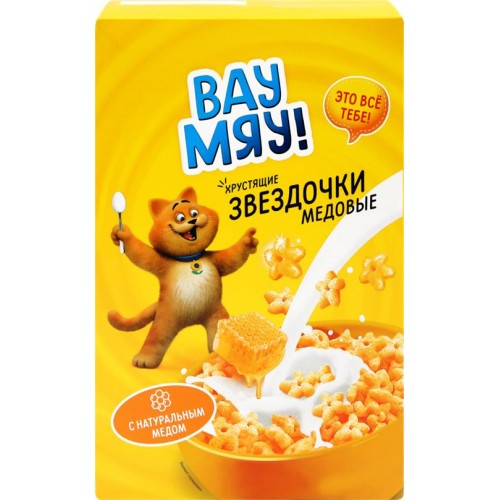 Готовый завтрак ВАУ МЯУ Звездочки медовые, 370г в магазинах Лента