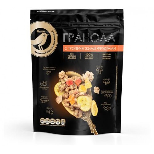 Гранола АШАН Золотая птица с тропическими фруктами, 280 г (kastd) в магазинах Ашан