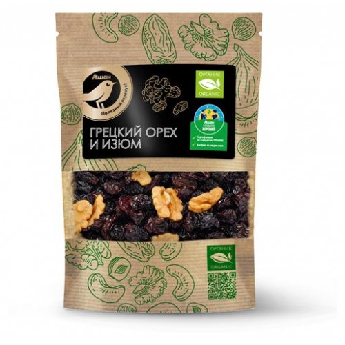 Грецкий орех и изюм АШАН Золотая птица органик, 100 г (kastd) в магазинах Ашан