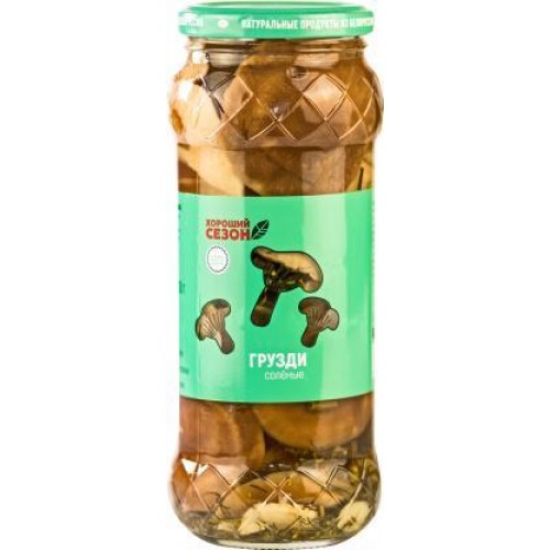 Грибы Хороший Сезон Грузди солёные 530г - это вкусный и питательный грибной деликатес. Изготавливается из цельных, бережно засоленных груздей высшего сорта с добавлением натуральных специй. Процесс стерилизации позволяет сохранить свежесть и вкус грибов. Рассол не содержит уксус, что делает грузди особенно нежными и ароматными.