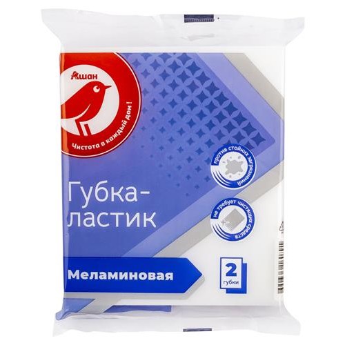 Губка АШАН Красная птица меламиновая, 110х70х25 мм, 2 шт (kastd) в магазинах Ашан