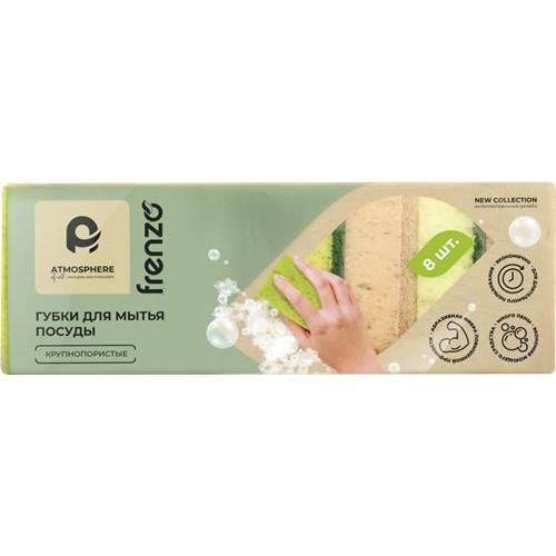 Губка для посуды ATMOSPHERE Frenzo, крупнопористая Арт. F3170, 8шт в магазинах Лента
