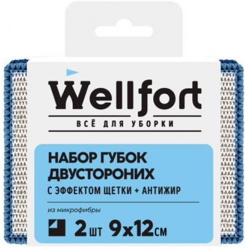 Губка Wellfort двусторонняя антижир 2шт в магазинах Магнит