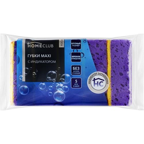 Губки для посуды HOMECLUB Focus Maxi 9,5х6,5х3,5см, с индикатором, Арт. 584-252, 5шт в магазинах Лента