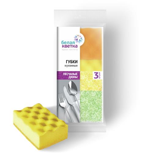Губки кухонные БЕЛАЯ КВЕТКА песчаные дюны, волна, 3шт в магазинах Авоська