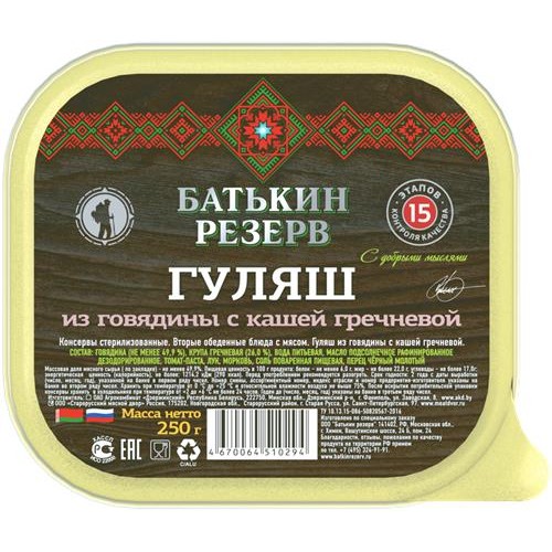 Гуляш из говядины БАТЬКИН РЕЗЕРВ с гречневой кашей, 250г в магазинах Лента