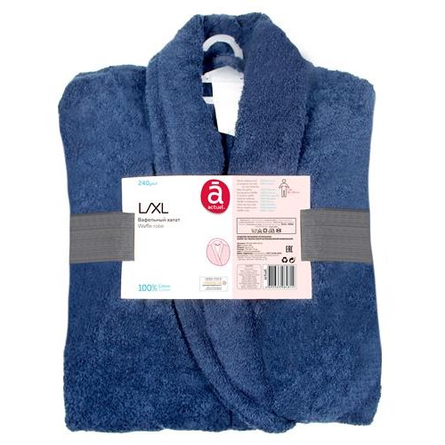 Халат Actuel махровый синий унисекс, L-XL (kastd) в магазинах Ашан
