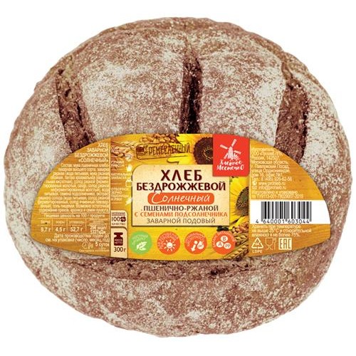 Хлеб бездрожжевой ХЛЕБНОЕ МЕСТЕЧКО Солнечный с семенами подсолнечника, 300г в магазинах Лента