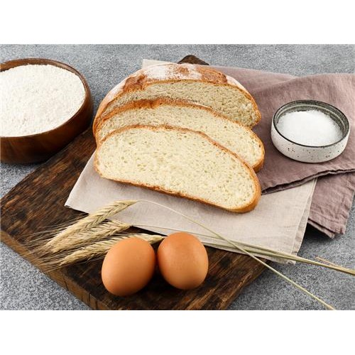 Мука пшеничная хлебопекарная высший сорт, вода, смесь хлебопекарная(разрыхлители(E575,E500ii,E450i), эмульгаторE482, гороховые волокна, агент антислеживающийE170, загустительE466, мука пшеничная солодовая, регулятор кислотностиE341i, ароматизатор, антиокислительE300, ферменты), маргарин(масла растительные, эмульгаторы(Е471,Е475), антиокислители(Е304i,Е306), регулятор кислотностиЕ330, ароматизатор, красители(Е100,Е160b)), сахар, соль. Продукт готов к употреблению. Дата и время изготовления указаны на дополнительной этикетке.Может содержать следы арахиса, кунжута, молока, сои, орехов, яиц.