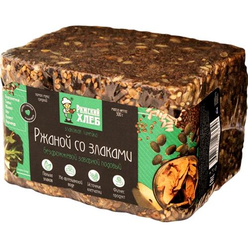 Хлеб бездрожжевой заварной РИЖСКИЙ ХЛЕБ Ржаной подовый со злаками, 300г в магазинах Лента