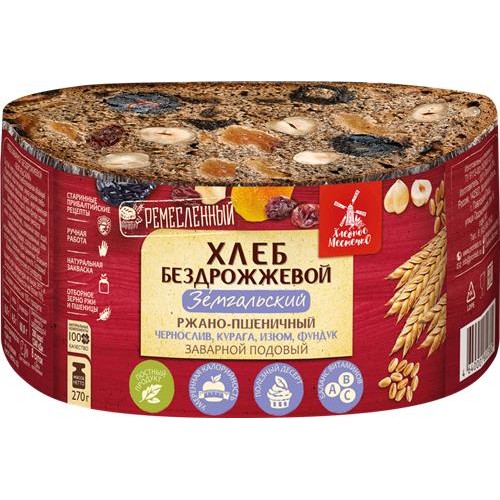 Хлеб заварной ХЛЕБНОЕ МЕСТЕЧКО Земгальский с черносливом, курагой, изюмом, фундуком, 270г в магазинах Лента