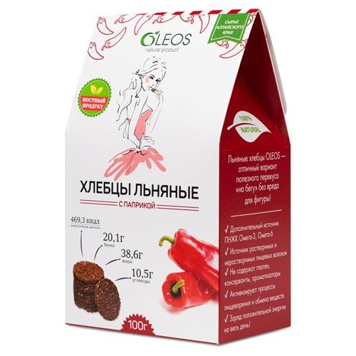 Хлебцы льняные OLEOS с паприкой, 100 г (kastd) в магазинах Ашан