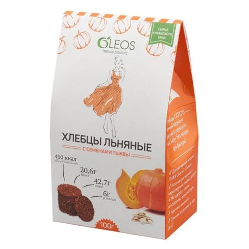 Хлебцы OLEOS льняные с семенами тыквы, 100 г (kastd) в магазинах Ашан