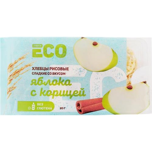 Хлебцы рисовые безглютеновые ЛЕНТА ECO сладкие со вкусом яблоко с корицей, 80г в магазинах Лента