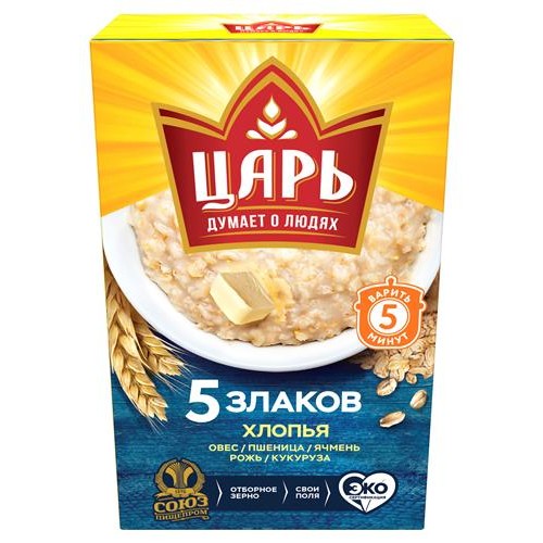 Хлопья ЦАРЬ 5 злаков, 400 г (kastd) в магазинах Ашан