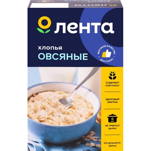 Хлопья овсяные ЛЕНТА не требующие варки, 800г в магазинах Лента