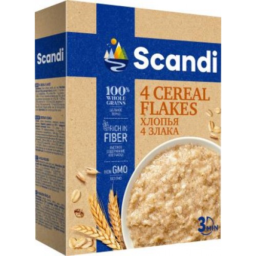 Хлопья Scandi 4 Злака 400 г – это высококачественный продукт, изготовленный из тщательно отобранного сырья по классическим технологиям. В его состав входят 4 вида злаков, каждый из которых обладает своими уникальными питательными свойствами.