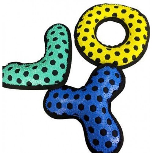 Игрушка изготовлена из прочных и безопасных материалов, способных выдерживать интенсивное использование и укусы острых зубов. Она также снабжена пищалкой, которая вызывает интерес у собак и поддерживает их активное участие в игре.