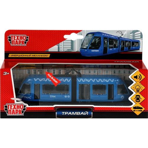 Игрушка ТЕХНОПАРК Трамвай 19см, металлическая, открывающиеся двери, инерционная, со световыми и звуковыми эффектами Арт. 256364 в магазинах Лента