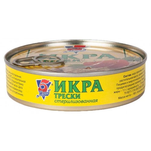 Икра трески 5 Морей стерилизованная, 160 г (kastd) в магазинах Ашан