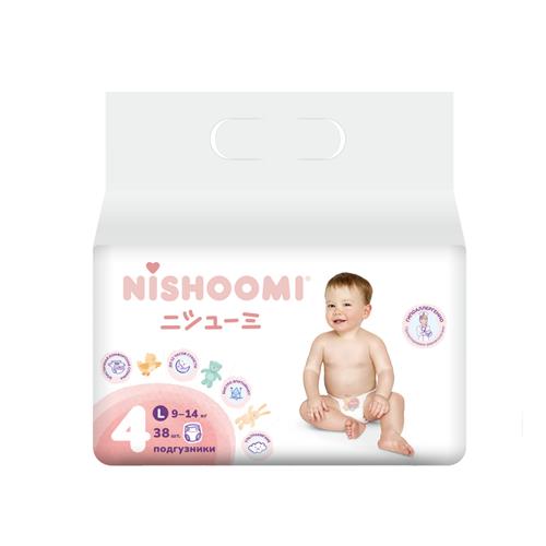 Изделия санитарно-гигиенические разового использования для ухода за детьми Nishoomi подгузники детские одноразовые. Размер Макси L 4, для детей весом 9-14 кг, 38 штук в уп.