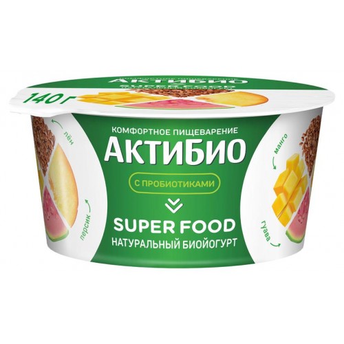 Йогурт АктиБио Super food с персиком манго гуавой семенами чиа амарантом и семенами льна 2,2% БЗМЖ 140 г (kastd) в магазинах Ашан