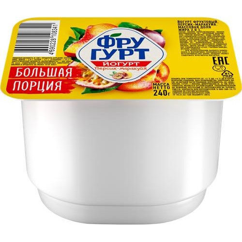 Йогурт ФРУГУРТ Персик, маракуйя 2%, без змж, 240г в магазинах Лента