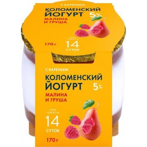 Йогурт Коломенский Малина и груша 5% 170г в магазинах Магнит