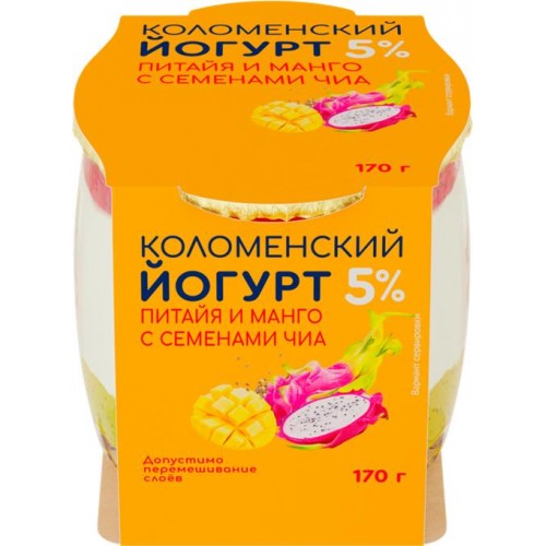 Йогурт КОЛОМЕНСКИЙ Питайя, манго, чиа 5%, без змж, 170г в магазинах Лента