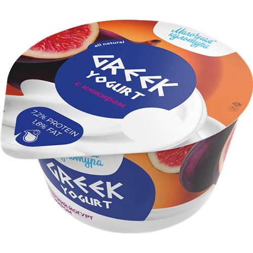 Йогурт МОЛОЧНАЯ КУЛЬТУРА Greek Yogurt с инжиром 1,8%, без змж, 130г в магазинах Лента