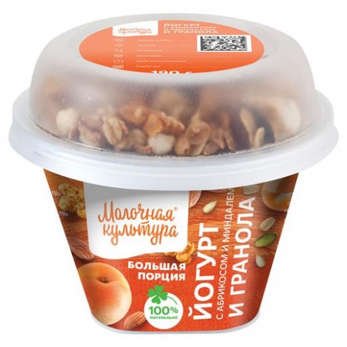 Йогурт Молочная культура с абрикосом миндалем и гранолой и изюмом 2,7-3,5% БЗМЖ, 190 г (kastd) в магазинах Ашан